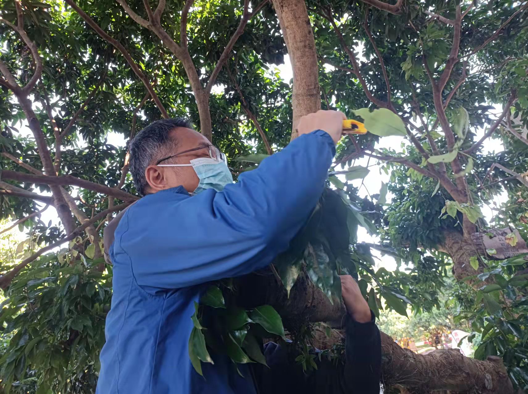 华南农业大学教授到荔博园示范荔枝环割技术